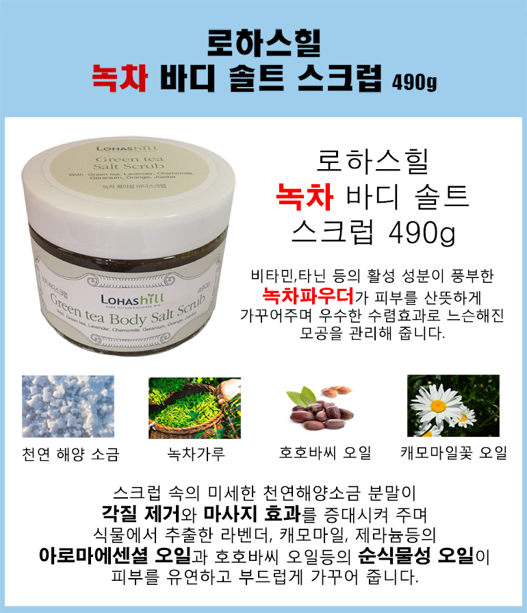 로하스힐 녹차 솔트 바디스크럽490g 마사지 각질제거