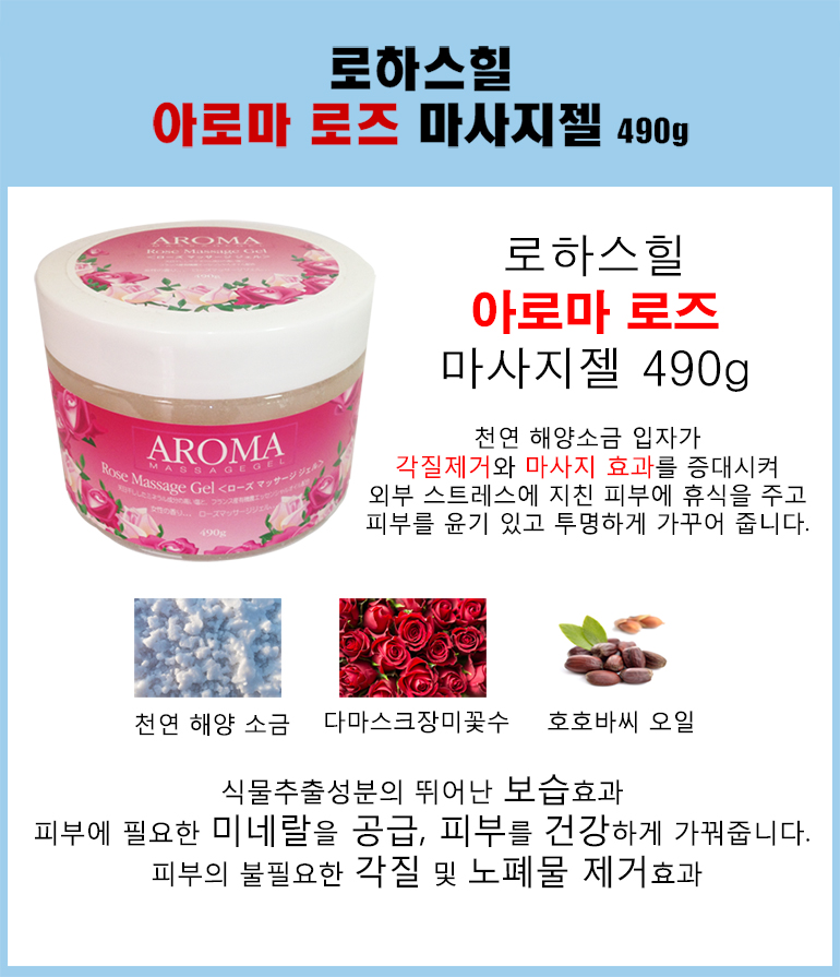 로하스힐 아로마 로즈 마사지젤 490g 솔트 바디스크럽